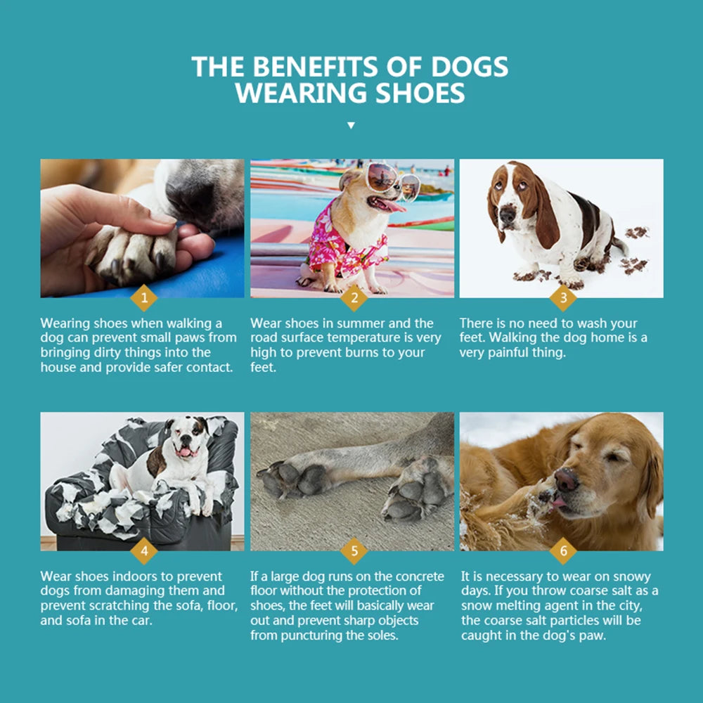 - Secure Fit for Large & Medium Dogs: Thoughtfully sized to fit larger breeds and medium-sized dogs, with adjustable fastenings to keep booties in place without restricting movement.
