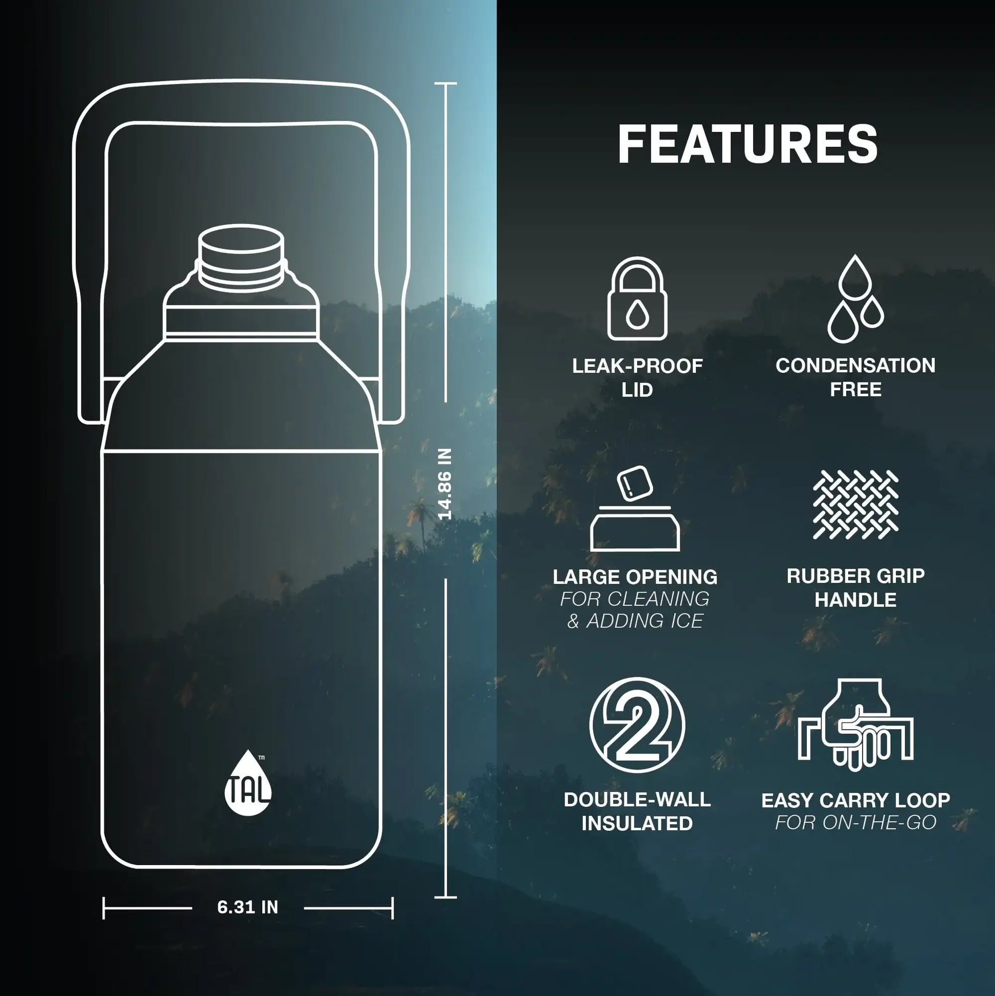 Stay hydrated in style with the TAL Stainless Steel Ranger Water Bottle, a robust and sleek solution for all your hydration needs. With an impressive capacity of 80 fl oz, this water bottle is perfect for adults who lead an active lifestyle, whether at the gym, on a hike, or simply running errands.